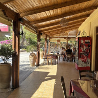 “ Great location for this tavern surrounded by flowers and succulents, which provides good service at prices that are not low but all in all within the norm. The grilled lamb accompanied by a good tomato salad is excellent, and the house wine is truly remarkable. ”